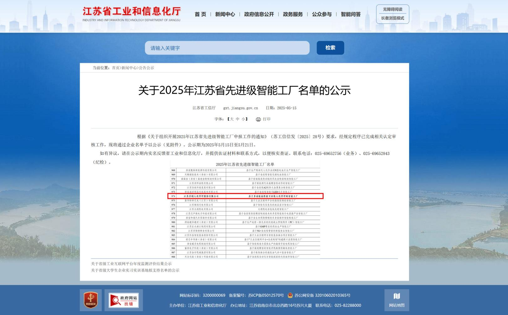 共創(chuàng)草坪上榜2025年江蘇省先進(jìn)級智能工廠名單