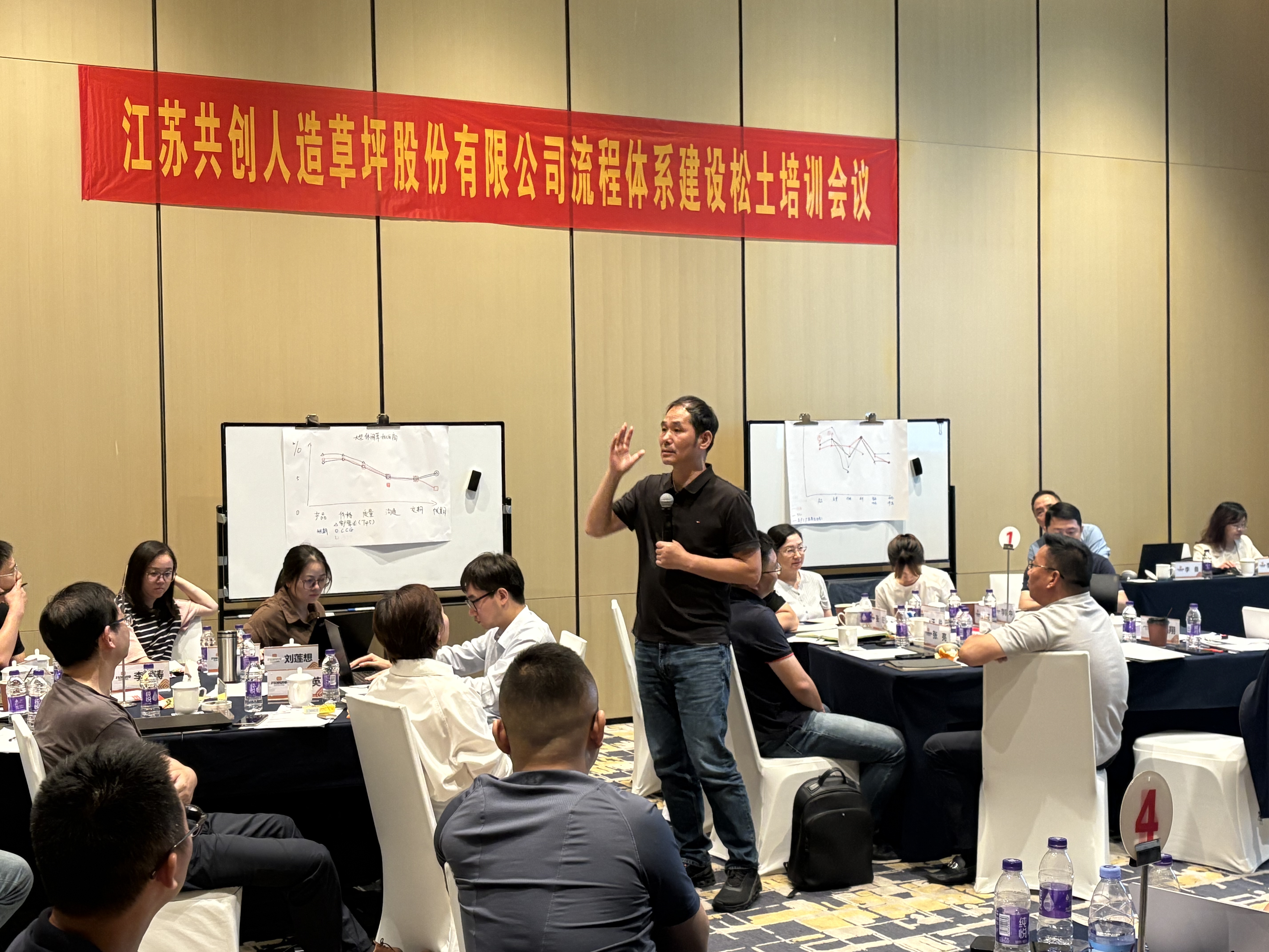 隨后,IBM流程體系專家團(tuán)隊(duì)展開(kāi)了系統(tǒng)、全面、精細(xì)化的授課。老師們深入闡述了流程體系建設(shè)的根本目的與核心價(jià)值,系統(tǒng)介紹了國(guó)際領(lǐng)先的流程框架,并對(duì)流程治理體系的組織保障、角色定位與職責(zé)劃分等關(guān)鍵要素進(jìn)行了詳盡解析。培訓(xùn)摒棄了單向灌輸?shù)哪J?,采用工作坊方式?ldquo;圓桌分組、深度研討”,現(xiàn)場(chǎng)氛圍熱烈。各小組迅速推舉組長(zhǎng),圍繞“流程能解決哪些核心管理痛點(diǎn)”、“共創(chuàng)草坪現(xiàn)有流程治理組織及角色職責(zé)的不足與優(yōu)化建議”、“如何科學(xué)搭建公司級(jí)流程框架”等關(guān)鍵研討點(diǎn)展開(kāi)了思想碰撞。與會(huì)人員結(jié)合公司營(yíng)銷、制造、研發(fā)、管理支持等各系統(tǒng)實(shí)際,以嶄新的流程思維審視問(wèn)題本質(zhì),踴躍發(fā)言,建言獻(xiàn)策,智慧火花不斷涌現(xiàn)。
